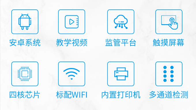 主控芯片采用32位处理器,运转速度更快,稳定性强。 | 直流12V供电,可连接车载电源。 | 光源亮度自动调节与校准 | 脉冲式恒流驱动,避免连续发光引起光衰和温漂。 | 可设置密码登录 | 不间断进样,连续检测 | 样本编号自动累加。 | 检测项目可扩充。 | 检测结果可批量打印,批量上传。 | 检测结果为Excel表格,连接电脑即可拷贝。 | 检测结果存储容量20万条 | 固件可升级 |