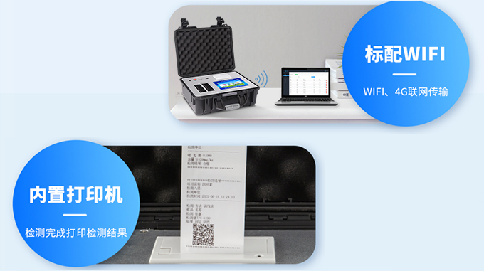 1) 可以通过GPRS模块,将数据无线传输到手机或者指定网络。 | 2) 5寸触摸屏或者7寸触摸屏,仪器默认为5寸屏。 | 3) 仪器加实现自身加热功能 | 4) 可配置大容量锂电池 |