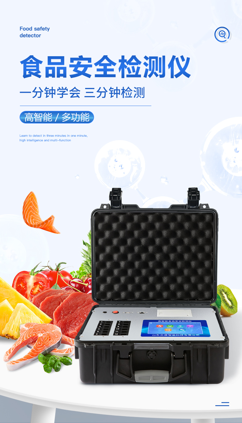 多功能食品安全检测仪可快速检测200多项目,包含非食用化学物质、滥用食品添加剂、农药残留、兽药残留、重金属、病害肉、营养强化剂、抗生素类残留、激素类残留、真菌毒素类残留、化学类残留等现场的定性定量检测。该多功能食品安全检测仪为集成化食品安全快速检测分析设备,广泛应用于市场监管局、检测中心、卫生监督部门、农业部门、院校及各单位食堂、食品肉产品深加工企业、商超市场、司法部门、餐饮机构、养殖场、屠宰场、检验检疫部门等单位使用。