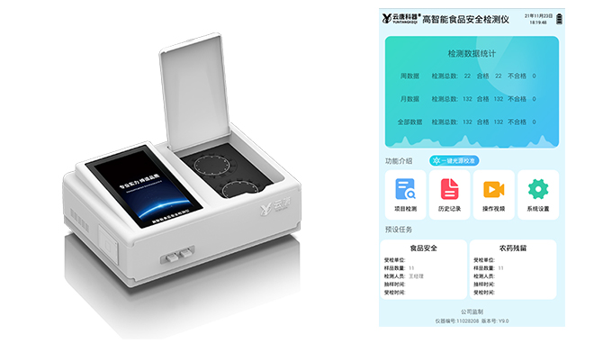 仪器采用台式一体化系统检测技术,将分光光度模块、胶体金检测模块、新型农残检测模块、数字化管理模块、无线通讯模块高度集成于一体,支持检测200种食品安全检测项目,同时预留升级检测方法。 | 仪器检测模块标准化、智能化,可随意自由组合。检测箱体内置多个标准检测单元,检测模块可以调整配置。 | 仪器采用全新安卓智能系统,主控芯片采用 ARM Cortex-A7,RK3288/4核处理器,10.1寸高清液晶触摸竖屏,更加**的UI交互界面,运转快捷;仪器配备无线通信模块: 4G(APN)通讯模块、Wifi模块,蓝牙传输,同时具有双USB接口以及RJ45接口能以多种方式实现数据保存和数据传输功能。 | 创新检测模式★检测通道:≥12通道;采用精密旋转比色池设计,使用同芯片同光源校准精度,解决不同光源之间的误差值。1-12通道间误差0.1%。(***:ZL202022821055.2) ★仪器具有自动识别比色皿检测功能,即:将样品比色皿放入仪器后,点击样品检测,仪器自动识别比色皿进行通道检测。 | 进口高精光源:高精度进口四波长冷光源,通道配置 410、520、590、630nm 波长光源,一个光源芯片驱动一个光源,误差极小,每台设备单独**校准光源,**比对,同时参照四种不同波段光源全方位覆盖市面上99%的农残食品项目检测。 | 胶体金模块检测方式:★采用COMS实时成像技术,可采集多个画面,支持2个金标同时读卡,通过不同颜色的灰度变化,一秒精准得出结果。 | 智能操作分析系统: | ★便捷操作系统:设备检测时可在同一检测界面自动对应相关检测通道一次性选择1-12个样品名称,无须退出界面,节省操作时间。(需提供对应证明) | ★数据集成系统:设备首页自动统计检测数据包含:周检测数据、月检测数据,全部检测总数量,均包含检测总数,合格数,不合格数,以及相关柱形分析图,对各项检测数据清晰掌握,无需电脑查询,更加快捷直观。(需提供对应证明文件) | ★项目预设系统:支持添加单个及多个相同或不相同的任务预设,一键快速调取,每一个任务分别可以设置不同的样品、批次、编号、来源、备注、抽样信息、检测信息、受检信息、复核信息等更多信息。无缝链接平台和APP实时查看下发任务。(需提供对应证明文件) | ★数据监管系统:同步对接监管平台,数据可局域网和互联网数据上传,检测结果可选择直接传至食品安全监管平台。集成OSS输出存储服务、区分设备定向管理应用,进行区域食品安全监管及大数据分析处理与数据统计,检测区域食品安全长短期动态,达到食品安全问题预估、预警。(需提供对应食品理化分析系统计算机软件著作权)。 | ★ 自定义打印系统:内置全新打印系统,新创自定义打印方式,可按需灵活设置开启或关闭:产品合格证(国家农业部标准要求),二维码,抽样信息、检测信息,受检信息、复核信息、抽样日期、检测日期等信息的打印。(需提供对应证明) | ★系统远程更新功能:可定向分客户分仪器更新系统,按照不同客户后期实际需求添加项目,无需机器返厂,即可远程实时升级全新系统,节省时间成本及避免运输造成设备损坏。 | 仪器主机采用一体化防水、抗压、防撞击、防腐蚀箱体设计,同时配备交直流供电,可连接车载电源,可选配大容量充电锂电池,满足现场野外检测需求。 | 安全证书,放心保障:仪器具有中国计量科学研究院校准证书,权威认证。 |