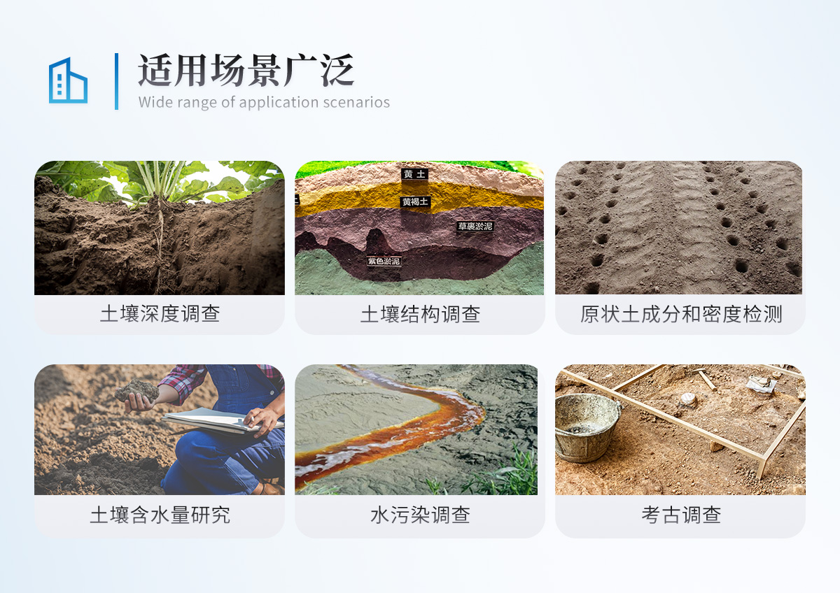 进尺快,样品保持原状,无扰动! | 可使用内置PVC取样管取样,也可直接取样! | 常规土层取样理想深度1-5米,松软土层可达10米! | 手拉式启动,即停触发按钮,弹簧隔离抗震手柄! | 起拔器采用更加合理的人体工程学设计,既可以手压也可以脚踩! |