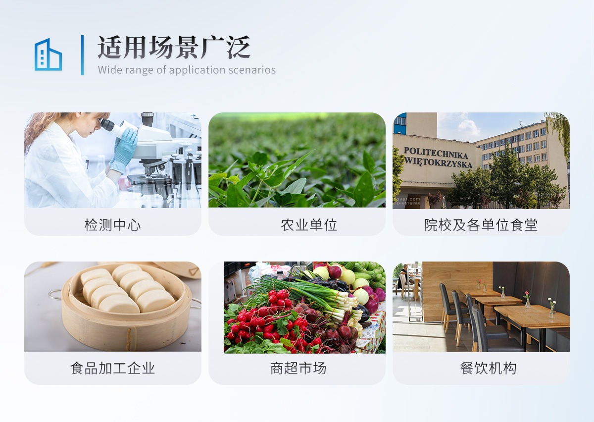 该多功能肉类检测仪为集成化肉品安全快速检测分析设备,广泛应用于养殖场、屠宰场、食品肉产品深加工企业、检验检疫部门、食药监局、卫生部门、高教院校、科研院所、农业部门等单位使用。