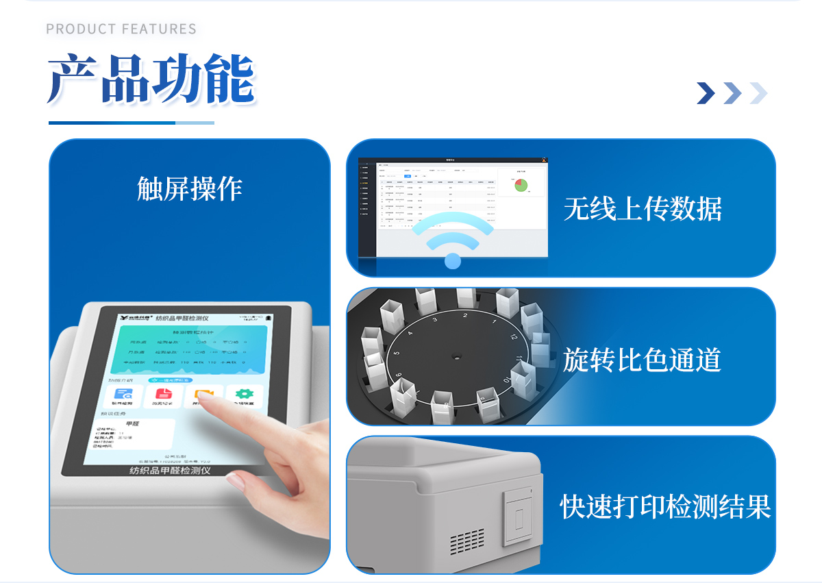 该纺织品甲醛检测系统与质检、商检机构采用同样执行标准、检测方法,专业为广大纺织品、服装等生产企业、质检商检单位提供“一站式服务”,同时为各类纺织品甲醛实验室提供专业的解决方案。
