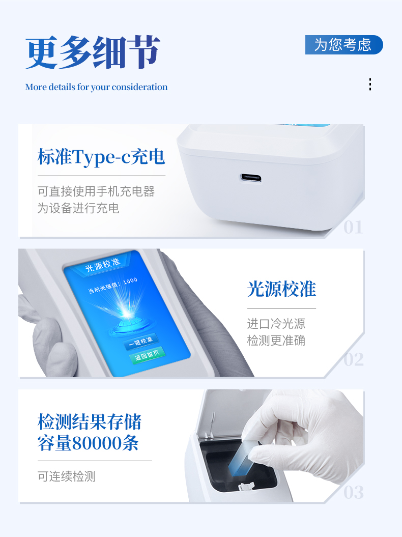 检测方法:光电比色 | 测试模式:浓度 | 波长范围:340~800nm | 系统:安卓智能操作系统 | 波长选择:自动 | 显示屏幕:3.5寸彩色液晶屏 | 稳定性:<0.5% | 灵 敏 度(吸光度):0.001 | 使用环境:0~50℃ 0~90%的相对湿度 | 数据存储:80000条以上 | 通讯:Type-C、WIFI、蓝牙 | 电池:5600mAh锂电池 | 连续工作时间:12小时 | 供电电压:5V/DC直流 | 尺寸:18cm*8cm | 重量:700g | 支持语言:简体中文或英文 |