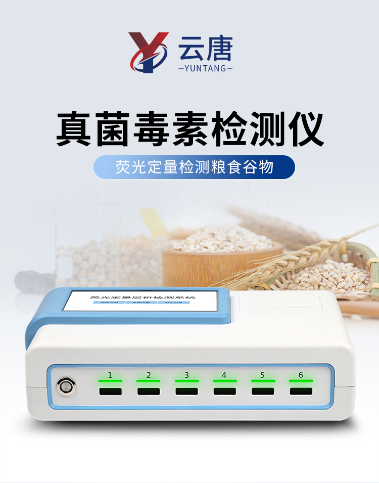 YT-L03型真菌毒素快速检测仪采用荧光定量快速检测原理,主要检测粮油谷物饲料中真菌毒素含量,包括黄曲霉毒素、玉米赤霉烯酮、呕吐毒素、伏马毒素、赭曲霉毒素、T-2毒素等等,检测样品涵盖粮食谷物(大米、玉米、小麦、大麦、高粱等)及其制品、饲料及其原料、食用油脂、牛奶及其制品等;样品前处理简单,整个检测过程检测12min,产品适用于地方粮库、谷物生产企业、饲料厂、各类畜牧养殖企业、面粉厂、食品加工厂、第三方检测机构及各级政府监管部门。