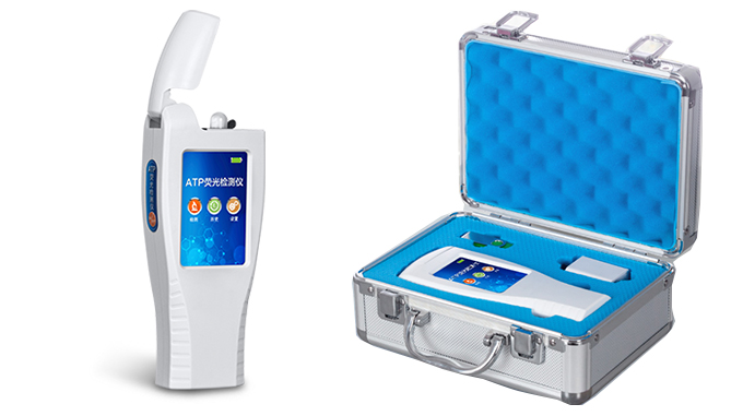 该设备为全新升级产品,大屏幕触摸显示屏,代替传统按键。操作采用生物化学反应方法检测ATP含量,ATP荧光检测仪基于萤火虫发光原理,利用“荧光素酶—荧光素体系”快速检测三磷酸腺苷(ATP)。ATP拭子含有可以裂解细胞膜的试剂,能将细胞内ATP释放出来,与试剂中含有的特异性酶发生反应,产生光,再用荧光照度计检测发光值,微生物的数量与发光值成正比,由于所有生物活细胞中含有恒量的ATP,所以ATP含量可以清晰地表明样品中微生物与其他生物残余的多少,用于判断卫生状况。