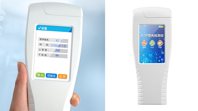该设备为全新升级产品,大屏幕触摸显示屏,代替传统按键。操作采用生物化学反应方法检测ATP含量,ATP荧光检测仪基于萤火虫发光原理,利用“荧光素酶—荧光素体系”快速检测三磷酸腺苷(ATP)。ATP拭子含有可以裂解细胞膜的试剂,能将细胞内ATP释放出来,与试剂中含有的特异性酶发生反应,产生光,再用荧光照度计检测发光值,微生物的数量与发光值成正比,由于所有生物活细胞中含有恒量的ATP,所以ATP含量可以清晰地表明样品中微生物与其他生物残余的多少,用于判断卫生状况。