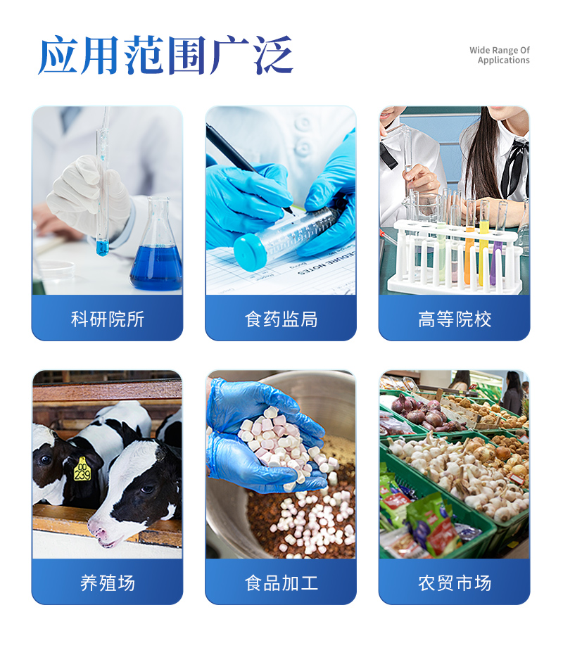 广泛应用于食品深加工企业、食药监局、商场超市、质量监督检验、工商管理、餐饮检测、各大食品安全监测系统等单位使用。