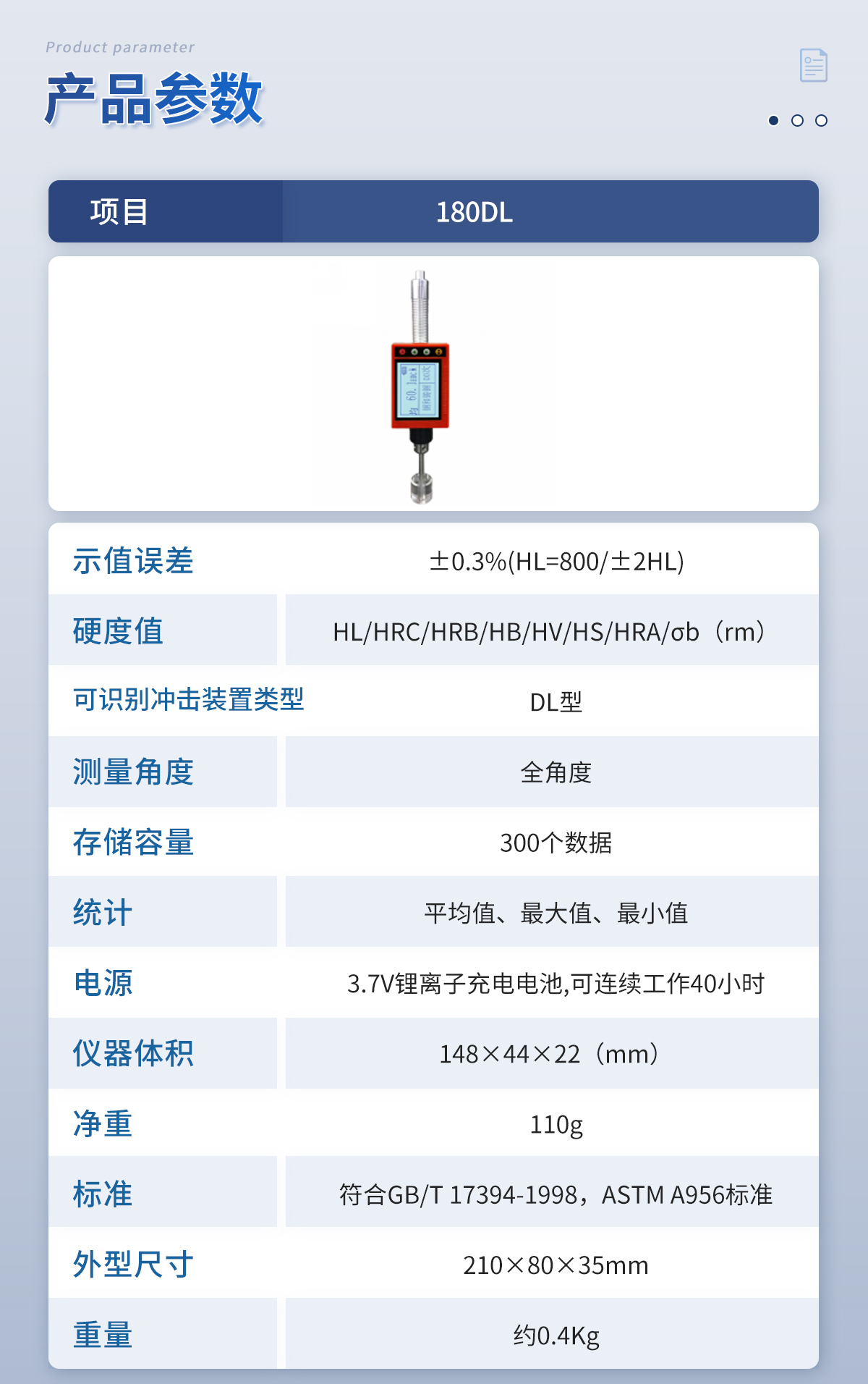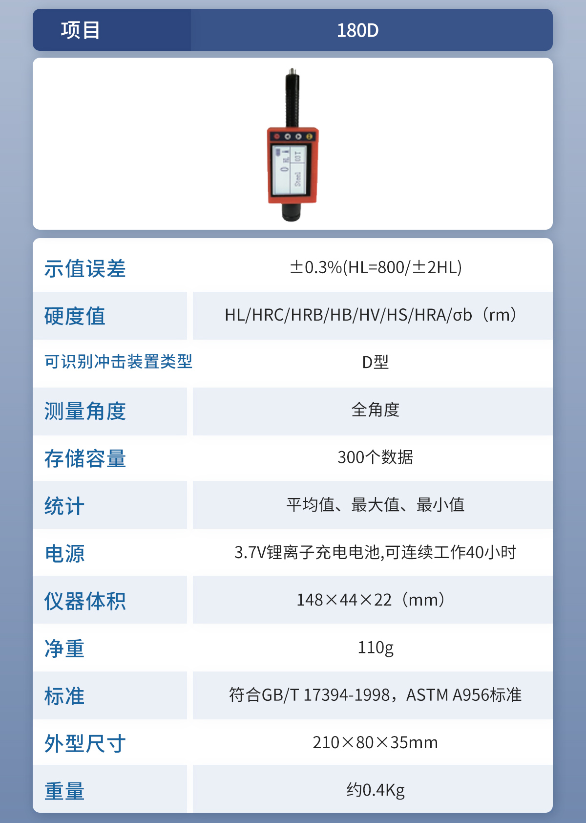 标准 | 符合GB/T 17394-1998,ASTM A956标准 |