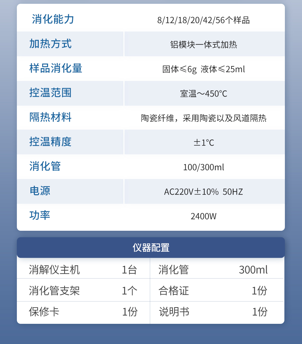3. 样品消化量:固体≤6g 液体≤25ml