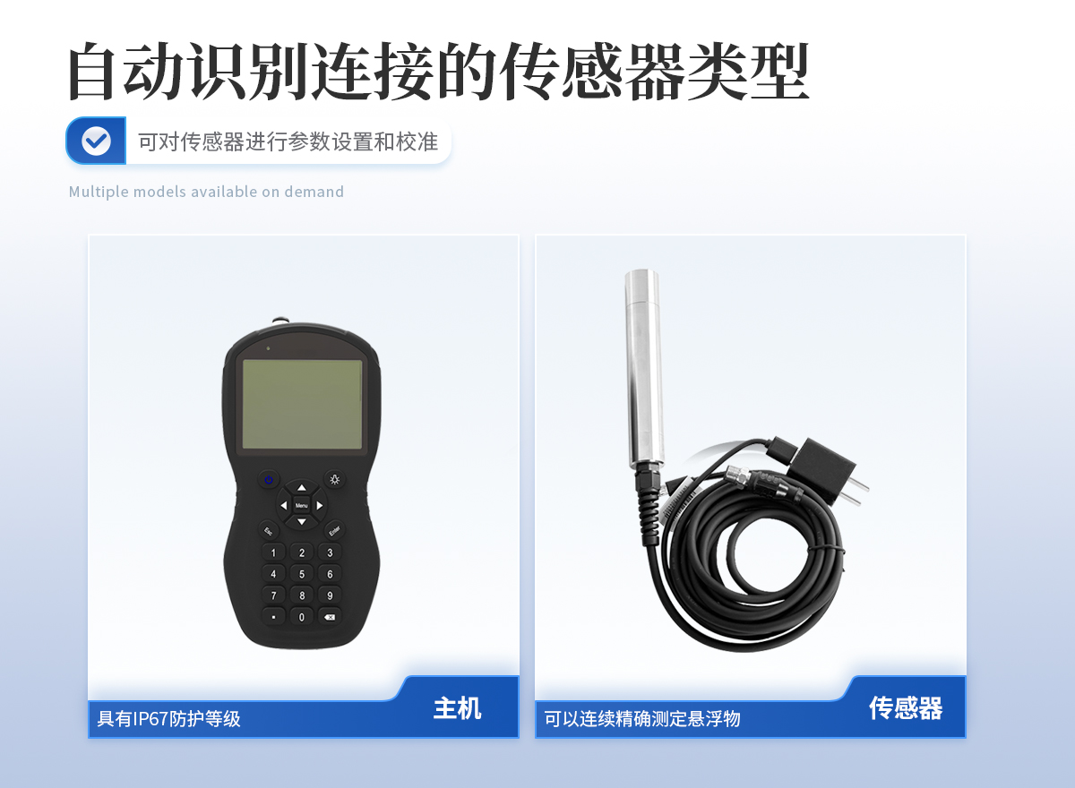 测量范围:0.1-20000 mg/L、0.1-45000 mg/L 、0.1-120000 mg/L(量程可选) 测量精度:小于测量值的±5%(取决于污泥同质性) 分辨率:0.01~1 mg/L,视不同量程而定 校 准:标液校准、水样校准 外壳材料:SS传感器:SUS316L 便携式主机外壳:ABS+PC 存储温度:-15到60℃ 工作温度:0~50℃(不结冰) 尺 寸/重量:SS传感器尺寸:直径60mm*长度 254mm 重量:1.65KG 便携式主机尺寸:203*100*43mm,重量:0.5KG 防护等级:便携式主机IP67;SS传感器IP68 电缆长度:标配3米电缆(可延长) 显 示:3.5寸彩色显示屏幕,背光可调 数据存储:大于100,000条数据
