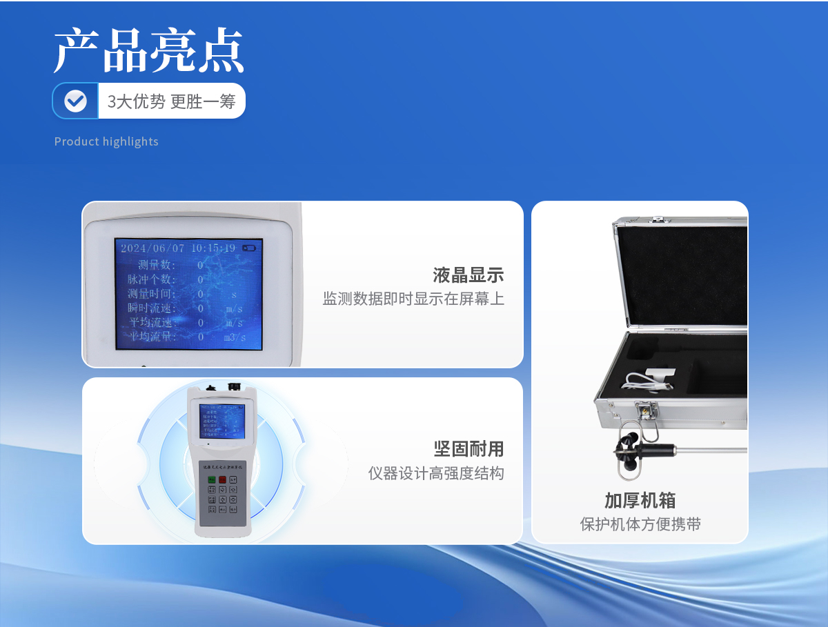 LS300-B型便携式流速流量仪(简称便携式流速仪)是专门为水文站、厂矿、环保监测站、农田排灌、水文地质调查等部门在野外进行明渠流速流量测量而研制的。