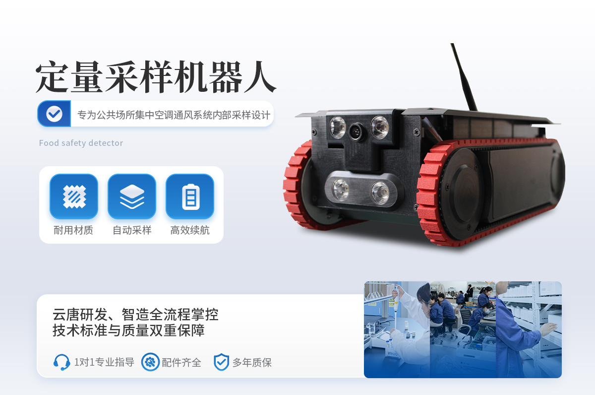 定量采样机器人是一款专为公共场所集中空调通风系统内部采样设计的高精度、便携式智能设备。该产品严格按照《WS 10013-2023公共场所集中空调通风系统卫生规范》、《WS/T 10004-2023公共场所集中空调通风系统卫生学评价规范》以及《GB 37488-2019公共场所卫生指标及限值要求》中的相关标准进行设计与制造,确保了其在各种工业环境下的稳定性和可靠性。它采用了**的航空铝合金材料,结合了**的移动性能与卓越的采样技术,能够满足多种行业的通风管道检测和维护工作需求。