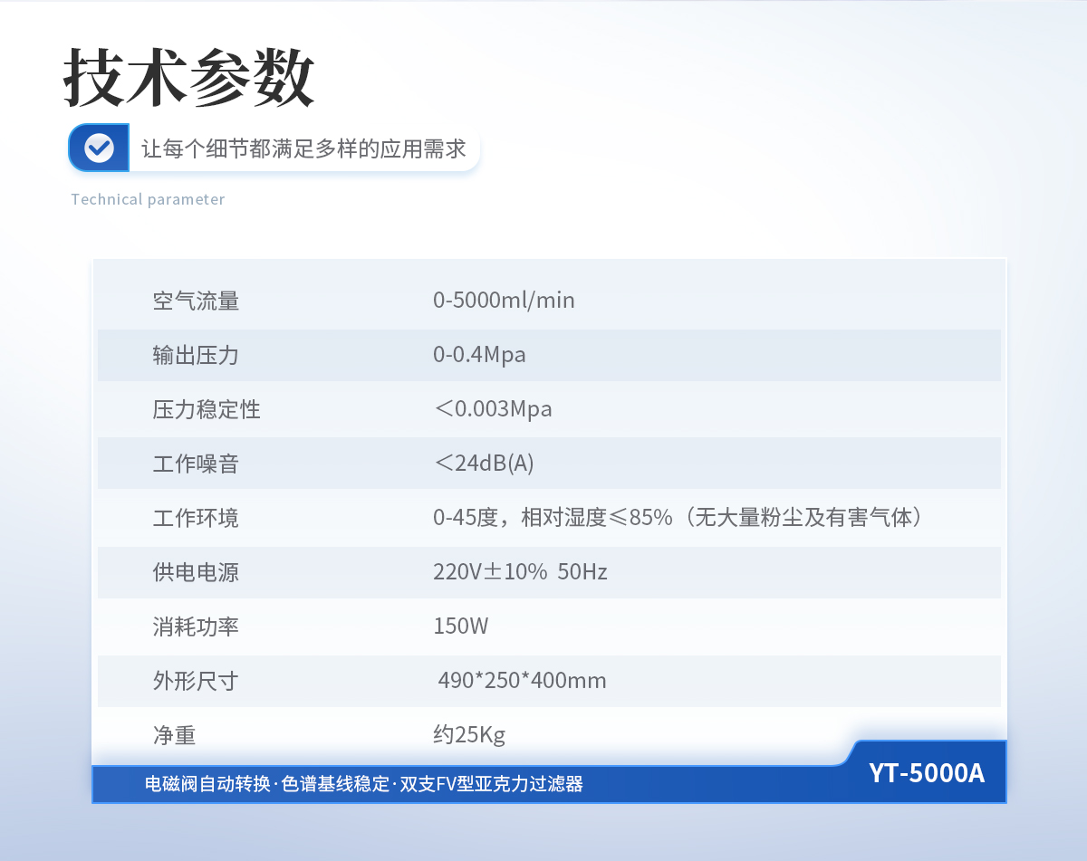 1、空气流量: 0-3000ml/min 2、输出压力: 0-0.4Mpa 3、压力稳定性:<0.003Mpa 4、工作噪音: <24dB(A) 5、工作环境: 0-45度,相对湿度≤85%(无大量粉尘及有害气体) 6、供电电源: 220V±10% 50Hz 7、消耗功率: 2000型(120W) 8、外形尺寸: 490*250*400mm 9、净重: 约22Kg