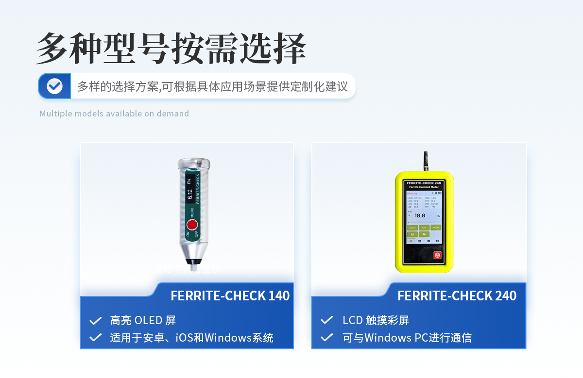 FERRITE-CHECK 240铁素体含量检测仪配有3个校准标准片,可追溯到NIST 远程操作