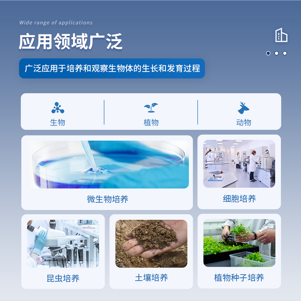 恒温恒湿培养箱是一种广泛应用于生物学、医学、农业科学等领域的实验设备,可以模拟和调节不同的温度和湿度条件,以培养和观察微生物、植物、动物等生物体的生长和发育过程。在微生物培养、植物种子培养、细胞培养、昆虫培养、土壤培养等领域都有着重要的应用。随着科学技术的不断发展,恒温恒湿培养箱的应用领域也将不断拓展和深化,为生命科学、生物技术、农业科学等领域的发展提供更加精准、**的实验支持。