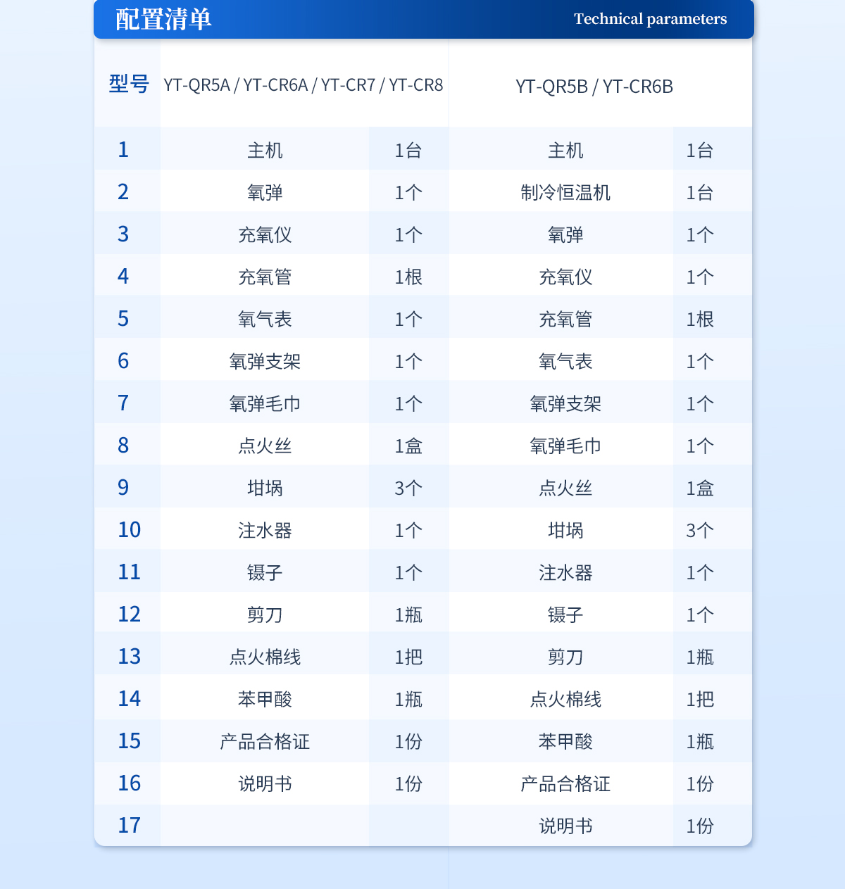 主机 1台 | 氧弹 1个 | 充氧仪 1个 | 充氧管 1根 | 氧气表 1个 | 氧弹支架 1个 | 氧弹毛巾 1个 | 点火丝 1盒 | 坩埚 3个 | 注水器 1个 | 镊子 1个 | 剪刀 1瓶 | 点火棉线 1把 | 苯甲酸 1瓶 | 产品合格证 1份 | 说明书 1份 |