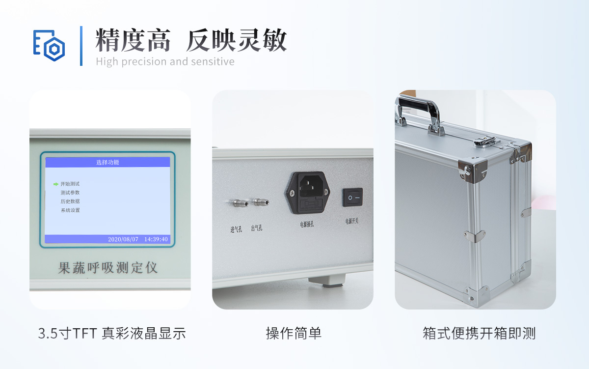 果蔬呼吸测定仪专门用于常温、冷藏库、气调库、超市冷柜等储藏条件下的果品和蔬菜呼吸强度的测定和分析研究。该仪器的特点是可以根据果蔬的 大小来选择不同体积的呼吸室,加快了平衡和测定时间;可以同时显示呼吸室的CO2浓度、O2浓度、温度和湿度。该仪器具有多功能、高精度、快速、**、方 便等特点,非常适合于食品,园艺、果品、蔬菜、外贸等各类学校、科研院所用于各类果品和蔬菜的呼吸测定。