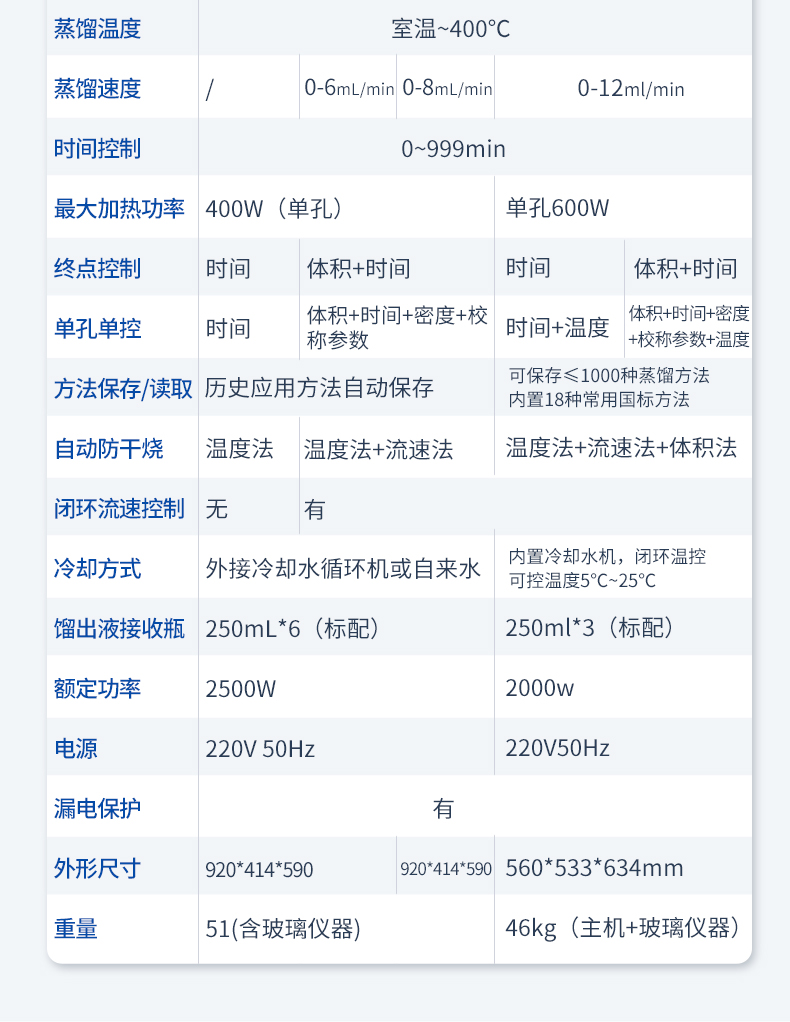 | 方法保存/读取 | 可保存≤1000种蒸馏方法,内置18种常用国标方法 | |