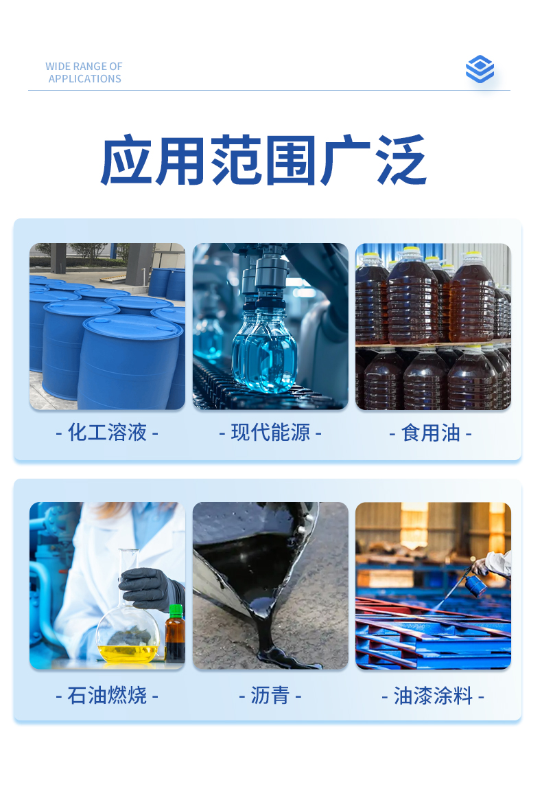 | 化工溶液、化工助剂、现代能源、石油燃烧、药剂、油漆涂料、沥青、食用油等各种液体、研究实验室。 |