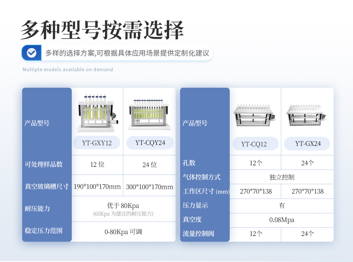 | 可处理样品数:12 位 | 真空玻璃槽尺寸:190*100*170mm | 耐压能力:优于 80Kpa(65Kpa 是我们建议的耐压能力) | 稳定压力范围:0-80Kpa 可调 | 配套试管架尺寸:Ø13/ Ø16,长度 145mm 以下。 |