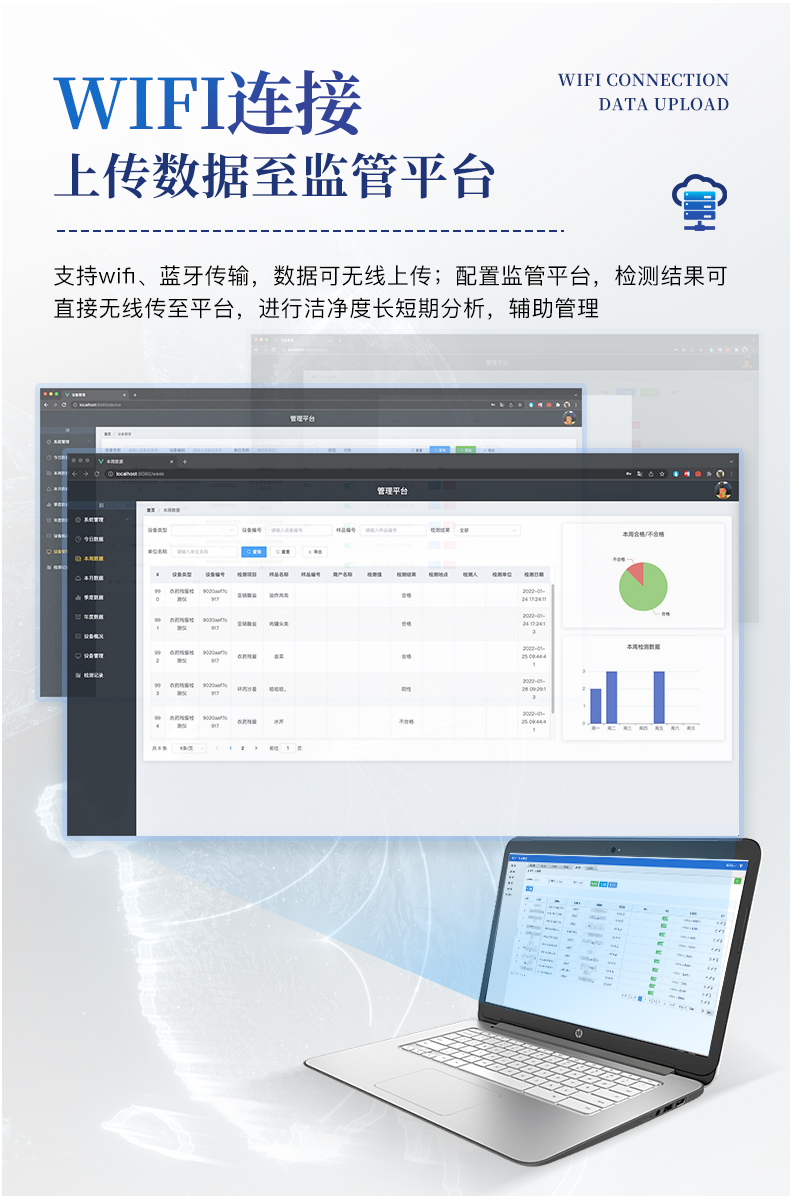 1、安卓系统7.1版本,操作交互体验更好。 2、内置温湿度传感器、环境气压传感器 3、核心部件光散射传感器明显消除腔体的杂散光,信噪比大为提高。从而使测量更准确更可靠。 4、按95%置信度(UCL)计算,计数结果可换算成m3和ft3 5、依照净化级别划分和规定,自动判定净化级别,使用便利。 6、支持wifi、蓝牙传输,数据可无线上传;同时支持U盘拷贝数据,免驱动插拔。 7、配置监管平台,检测结果可直接无线传至平台,进行洁净度长短期分析,辅助管理。 8、内置新一代高速热敏打印机,可选择所需要打印的粒径通道,灵活打印结果。 9、交直流两用,内置充电锂电池,环保耐用可支持连续采样6小时以上。 10、便捷简易伸缩式云台支架,安装采样操作更加方便。